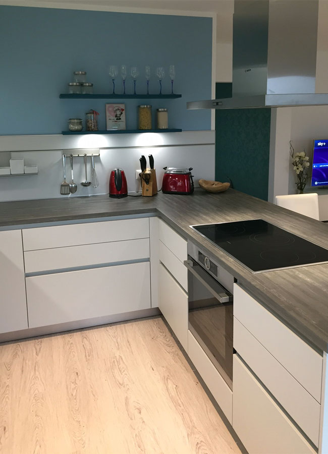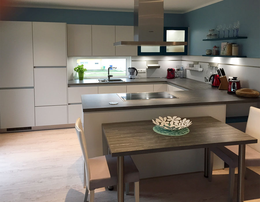Einen großen Anteil unseres Kundenstamms sind private Haushalte mit unterschiedlichsten Ansprüchen und Wünschen. Doch auch für gewerbliche und öffentliche Auftraggeber sind wir regelmäßig tätig. Lassen Sie sich von den durch uns realisierten Küchen und Einrichtungen inspirieren.